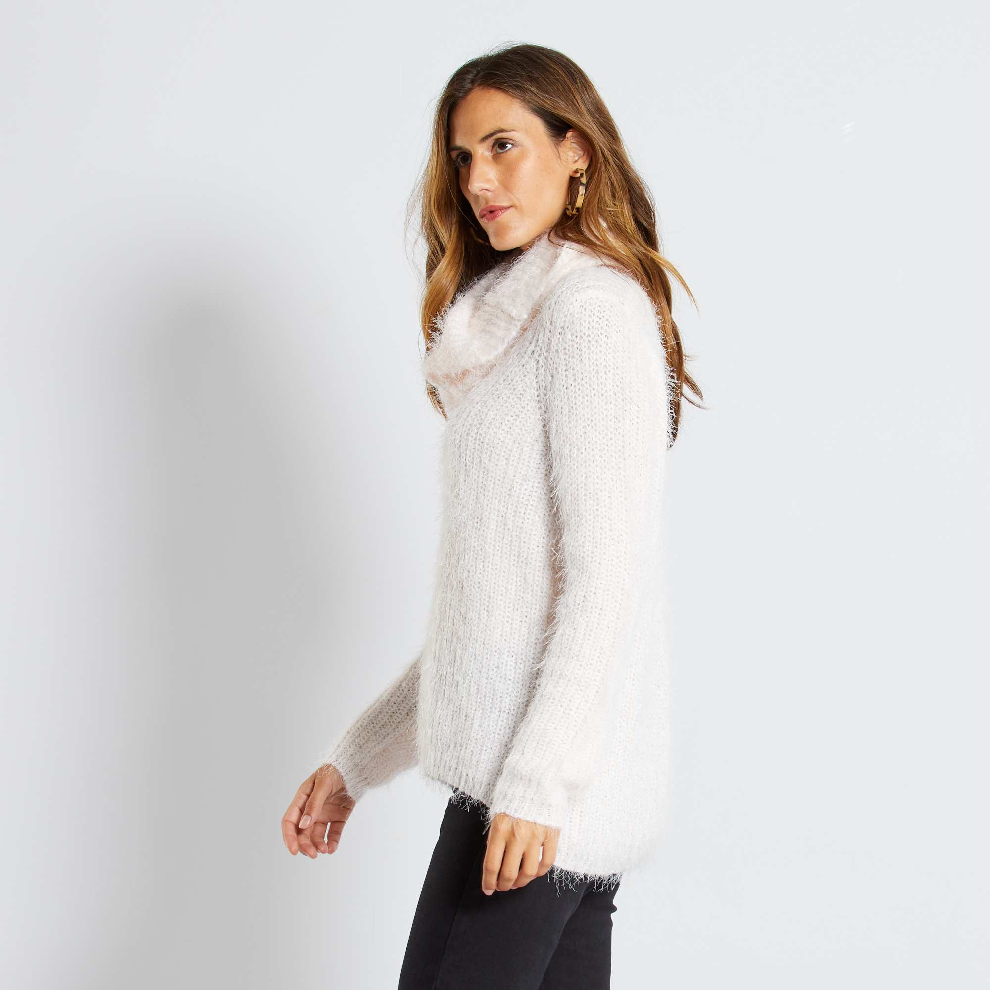 Pull + col roulé amovible maille doudou femme blanc Kiabi 10,80€