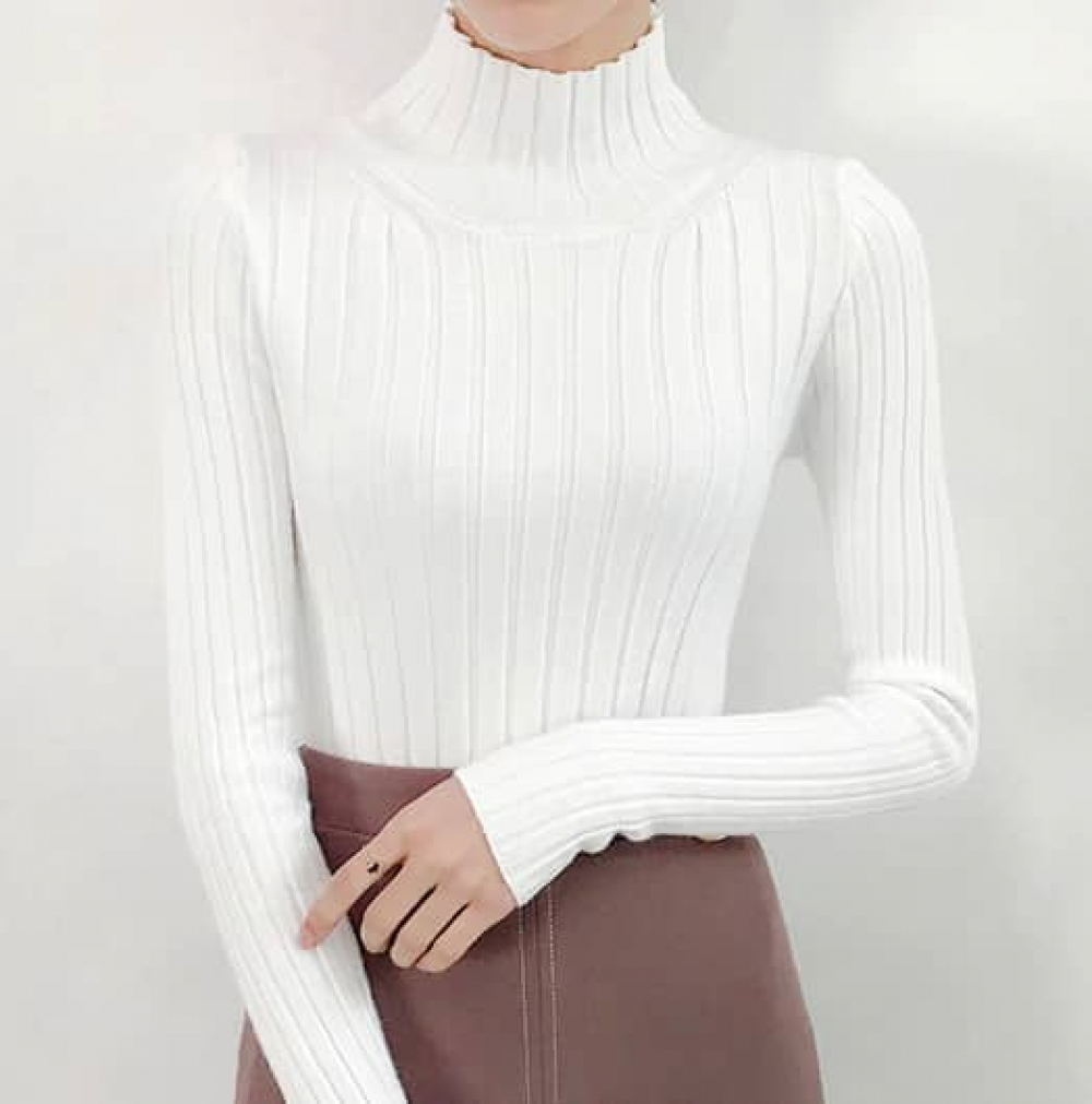 Pull A Col Roulé Blanc Femme xxcer