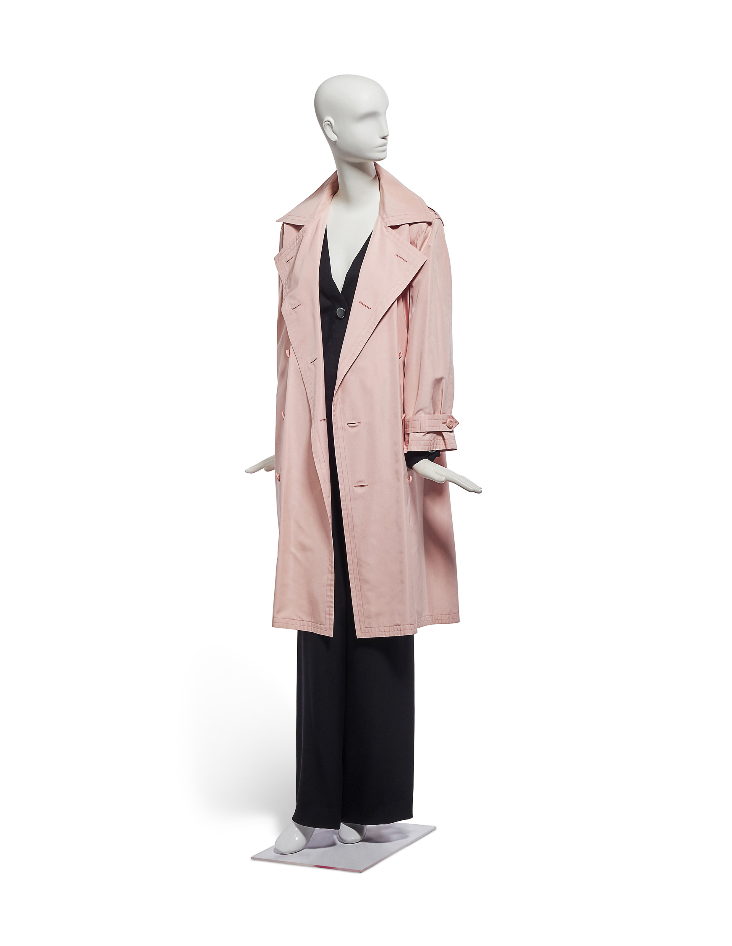 YVES SAINT LAURENT HAUTE COUTURE CIRCA 1982, A LIGHT PINK FAILLE TRENCH